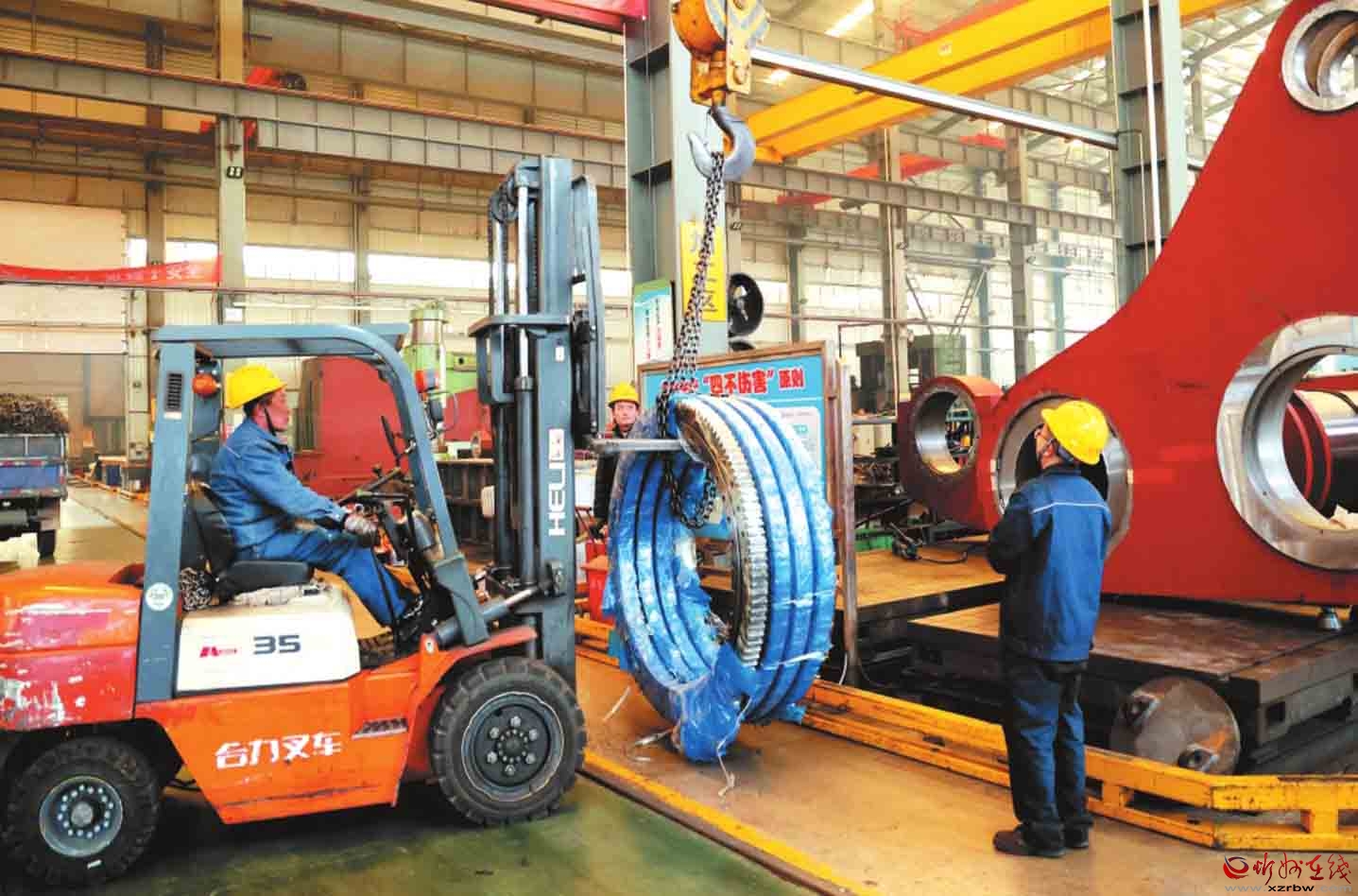 山西晨輝鍛壓設(shè)備制造有限公司生產(chǎn)車間,工人搶時間趕進(jìn)度,全力保障首季訂單任務(wù)按時完成。(
