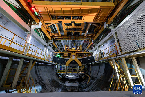 1月6日,中鐵十四局施工人員在“深江1號”盾構機上進行管片螺栓緊固工作。(新華社記者 毛思倩 攝)