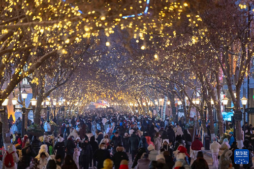 1月12日,游客在哈爾濱中央大街上游覽。(新華社記者 張濤 攝) 時(shí)下,“冰城”哈爾濱正值冰雪旅游季。夜幕降臨,百年老街中央大街被璀璨燈火點(diǎn)亮,游客置身其中,仿佛步入流動(dòng)的冰雪藝術(shù)長(zhǎng)廊,令人流連忘返。 (責(zé)任編輯:蔡文斌) |