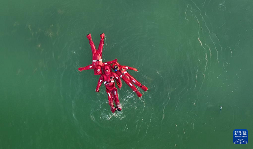 1月17日,市民在銀川文旅集團(tuán)覽山公園體驗(yàn)“冰浮小龍蝦”特色項(xiàng)目(無(wú)人機(jī)照片)。(新華社記者 王鵬 攝)