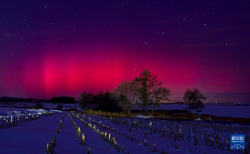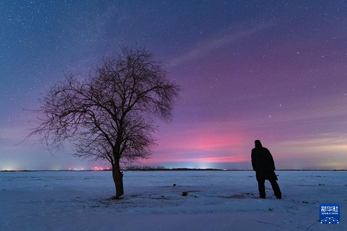 1月20日在位于黑龍江省黑河市的北大荒集團北安分公司二龍山農(nóng)場有限公司拍攝的絢麗極光。(新華社發(fā) 錢泊羽 攝)