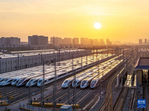 春運大幕即將拉開,中國鐵路西安局集團有限公司西安動車段內(nèi),高鐵動車組靜候待發(fā)。