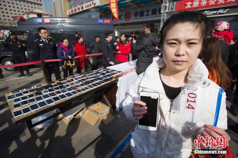 3月2日,山西太原警方發(fā)還民眾被盜手機(jī)。近日,太原市公安局偵破一個(gè)手機(jī)扒竊犯罪團(tuán)伙,破獲案件200余起,追繳手機(jī)180余部。張?jiān)?攝