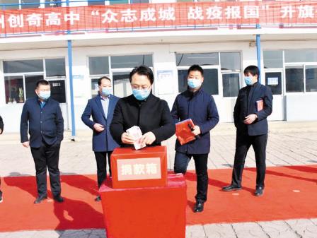 自新冠肺炎疫情發(fā)生以來,忻州創(chuàng)奇高中在做好學(xué)校疫情防控工作、宣傳抗疫英雄事跡、對師生進(jìn)行家國情懷教育的同時,發(fā)出支持新冠肺炎疫情防控工作愛心捐款的倡議,積極組織師生進(jìn)行捐款。全體師生積極響應(yīng),通過線上、線下的方式捐款,表達(dá)對湖北、對武漢的支持和關(guān)愛,用實(shí)際行動譜寫了一曲擔(dān)當(dāng)、大愛的奉獻(xiàn)之歌。全校師生線上線下捐款共計(jì)10萬元,彰顯了學(xué)校的拳拳愛心,體現(xiàn)了創(chuàng)奇人心手相連、守望相助、眾志成城、戰(zhàn)疫報國的決心與信心。