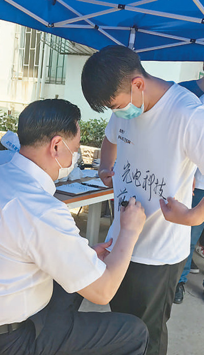 8日,華中科技大學(xué)校長(zhǎng)為畢業(yè)生寫下祝福語。朱必勇攝