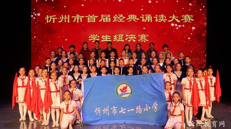 “共讀中華經(jīng)典,聆聽(tīng)古詩(shī)書(shū)韻”。由中共忻州市委宣傳部主辦,忻州市廣播電視臺(tái)承辦 “忻州市首屆經(jīng)典誦讀大賽”經(jīng)過(guò)初賽海選和緊張激烈的復(fù)賽和決賽,于11月1日落下帷幕。本次比賽學(xué)生組共有四十一個(gè)參賽節(jié)目,經(jīng)過(guò)角逐,有十個(gè)節(jié)目進(jìn)入了決賽。決賽采取評(píng)委當(dāng)場(chǎng)亮分,現(xiàn)場(chǎng)點(diǎn)評(píng)的方式,最終評(píng)出一等獎(jiǎng)一名,二等獎(jiǎng)二名,三等獎(jiǎng)三名,最佳風(fēng)采獎(jiǎng)四名。七一路小學(xué)以98.51分的成績(jī)奪冠,榮獲學(xué)生組一等獎(jiǎng)。同時(shí)學(xué)校也榮獲優(yōu)秀組織獎(jiǎng)。