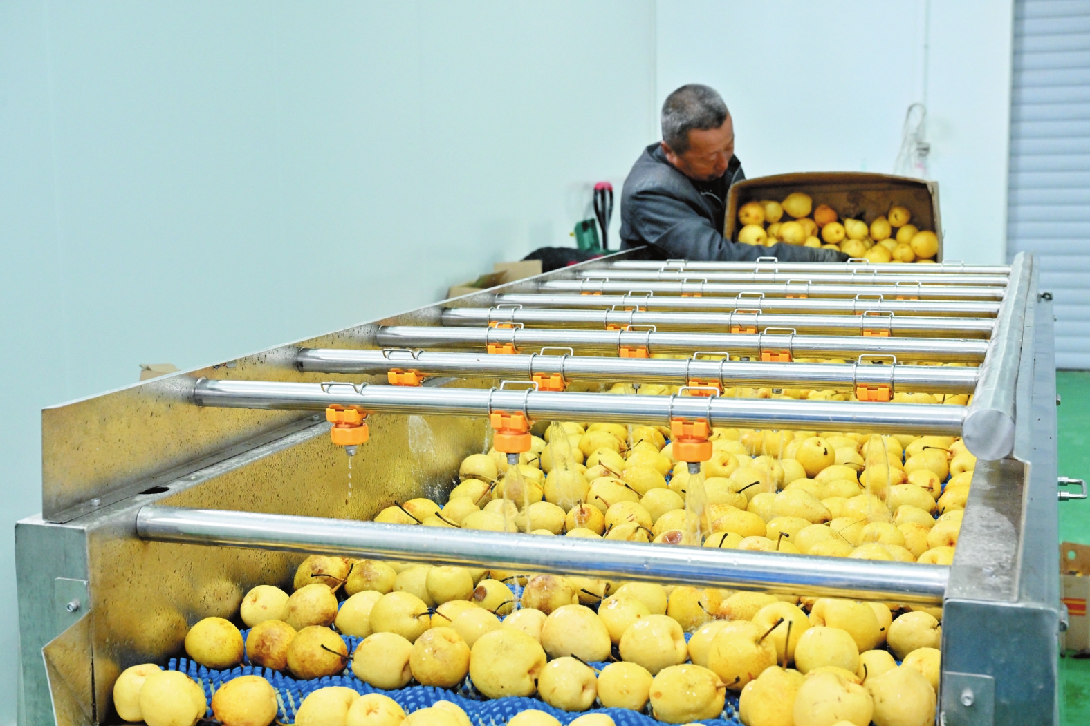 偏關(guān)高家上石會(huì)村梨加工生產(chǎn)線。本報(bào)記者馮曉磊攝
