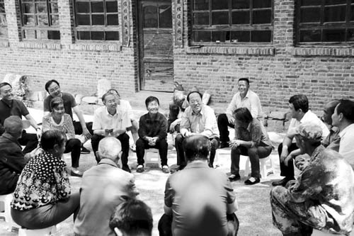 圖為市委常委、岢嵐縣委書(shū)記王志東,縣委副書(shū)記、縣長(zhǎng)侯俊生在岢嵐縣趙家洼村與搬遷群眾座談,共話發(fā)展。