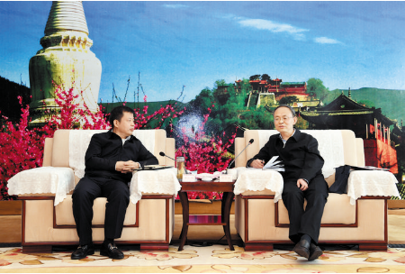 市委書記鄭連生會(huì)見(jiàn)山西文旅集團(tuán)董事長(zhǎng)王文保。 本報(bào)記者 劉紀(jì)森 攝