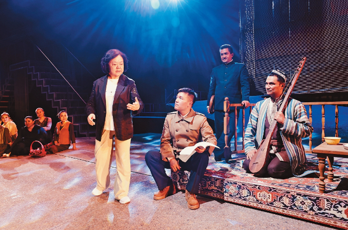 無論是《漢口茶港》中茶商抗日的英雄氣概,《奧涅金》中對真摯愛情的永恒追求,還是《原野》中對人性復(fù)雜性的深刻揭示,她的作品總能在具體故事中提煉出超越時(shí)代的價(jià)值。而對于《木卡姆戀歌——萬桐書》,她更看重作品在鑄牢中華民族共同體意識(shí)方面的現(xiàn)實(shí)意義,“無論從當(dāng)年萬桐書先生到新疆搶救木卡姆,還是我們劇組本身,我的執(zhí)行導(dǎo)演是維吾爾族,演員隊(duì)伍也是多民族的,整個(gè)劇組就是一個(gè)大家庭。”