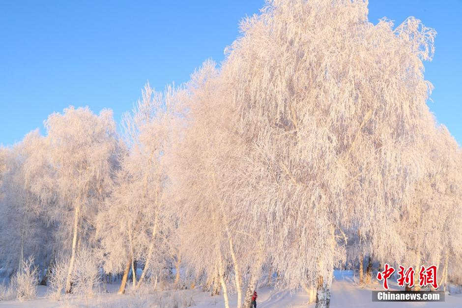 連日來,新疆阿勒泰地區(qū)遭遇十年來罕見強降雪,雪后初霽,氣溫漸降。1月4日,受超低溫天氣的影響,阿勒泰哈巴河白樺林出現(xiàn)大面積霜掛美景,晶瑩剔透,潔白無瑕,銀裝素裹,成為一道道美麗的風(fēng)景線。 謝師民 攝