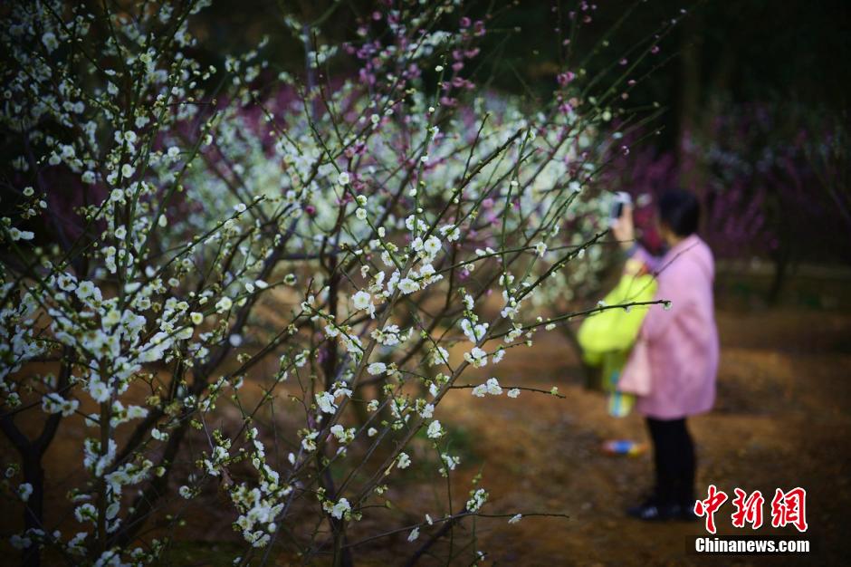 2月20日,三湘大地氣溫逐漸回升,湖南省森林植物園千株梅花競(jìng)相綻放,眾多游客置身于花海中,與這難得的美景合影留念。 楊華峰 攝