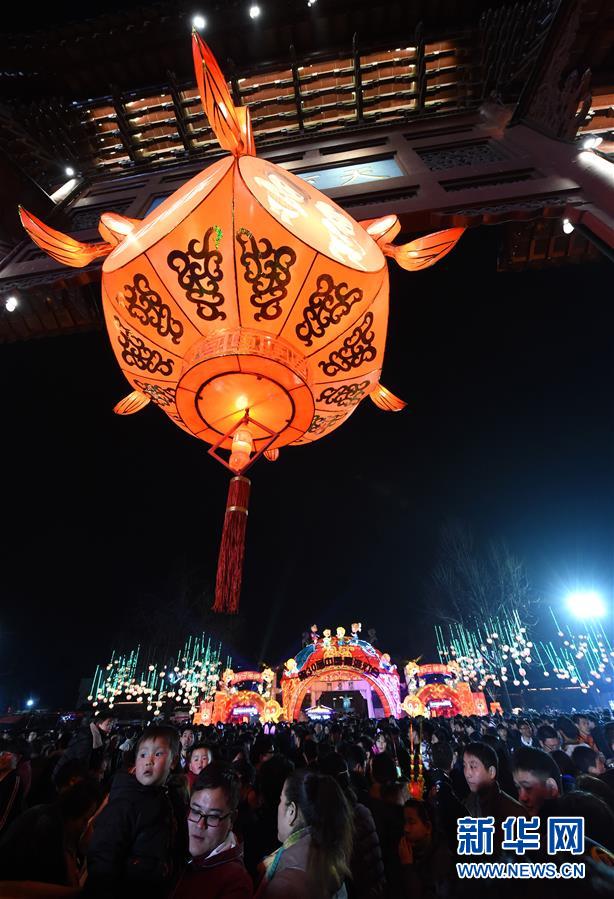 2月22日晚,游人在夫子廟景區(qū)觀燈游玩。當(dāng)晚,在江蘇南京夫子廟秦淮風(fēng)光帶舉辦的秦淮燈會(huì)彩燈齊放,人們前來(lái)觀燈鬧元宵。 新華社記者孫參攝