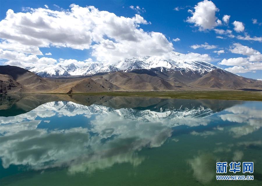 慕士塔格峰倒映在卡拉庫里湖里(6月7日攝)。6月的帕米爾高原風光旖旎,吸引國內(nèi)外大量游客前來領(lǐng)略它的神韻。 新華社記者 趙戈 攝