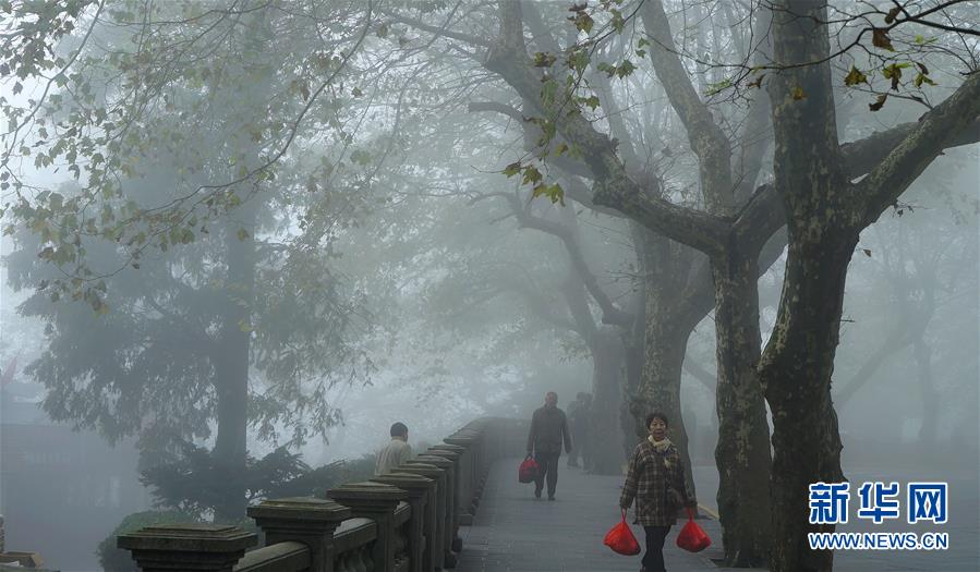 目前,江西廬山秋色正濃,瞬息萬(wàn)變的云霧與秀美的自然景觀,編織成一幅美麗的畫(huà)卷。新華社記者 萬(wàn)象 攝