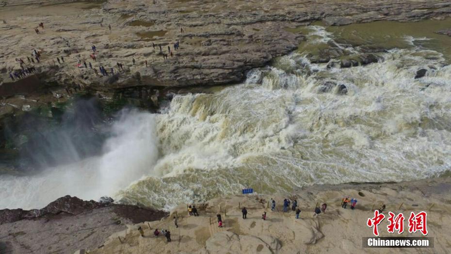 壺口瀑布是中國第二大瀑布,是世界上最大的黃色瀑布。記者20日看到,飛舞的瀑布和河水蕩起浪花,一道彩虹掛在瀑布騰起的飛霧里,讓冬日的壺口多了色彩。 高慶國 攝