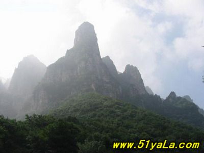 五老峰史稱東華山,歷史上為北方道教名山,海拔1809.3米,奇峰險(xiǎn)峻,需攀鏈而上,屬丹霞地貌。這里是層層峰巒,森林古木,各種生物覆蓋著整個(gè)山野。花紅草綠,山光水色,風(fēng)光旖旎非凡,故有“北有五臺(tái)觀庫(kù)存宇,南在五老看風(fēng)光”之說(shuō)。游人往縣城西南遠(yuǎn)眺,見(jiàn)有東錦屏峰、西錦屏峰、太乙坪峰、棋盤山峰四山峰仙態(tài)神姿,隱現(xiàn)于云煙蒼茫之中,將高1809.3米的玉柱峰環(huán)抱其中,“有偃蹇傴樓之伏”,猶如五位老人抱拳作揖迎貴賓之勢(shì),故名五老峰。