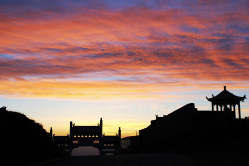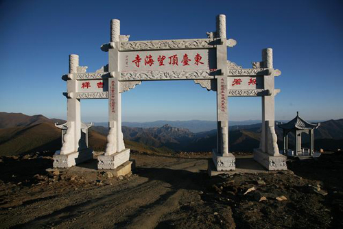 望海峰的盛景在于東觀日出。由于東面再無(wú)大山阻擋,所以人的目力可東眺非常遙遠(yuǎn)的地方。峰頂曾建有望海樓,專(zhuān)門(mén)為觀景而建??上昃靡褮В?985年重建,為望海寺,內(nèi)供聰明文殊。有史籍記載日出之壯麗景象:“每當(dāng)蒸云寢壑之隙,爽氣澄秋之際,于日出扶桑之時(shí),可望紅日十倍于車(chē)輪,紅輪之下,隱隱水光閃爍,若波若鏡,瑰麗非凡。1977年8月,趙樸初先生登東臺(tái)觀日出后乘興填詞《五臺(tái)雜詠·調(diào)寄憶江南》,形象描繪了東臺(tái)日出之勝景: