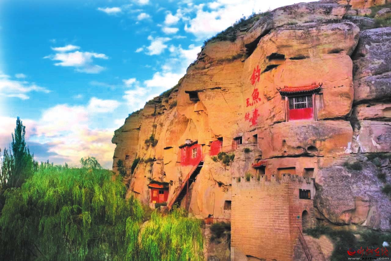 釣魚臺在石壁上鑿就,構件懸空,門額上鐫刻著“天險雄辟”四字。石窟呈方形,共有六處,形狀大同小異,內(nèi)設佛祖閣、潮音閣、藏經(jīng)洞、古韻軒、呂祖祠等佛教活動區(qū)。從地形上看,釣魚臺恰好位于黃河由西向南將要拐彎的回旋之地,陳奇瑜之孫陳大德在《釣魚臺記》中曾對此地的優(yōu)美風景進行描述:“輕鰷出水,白鷗矯翼,釣艇往來碧波間……”遺憾的是,陳奇瑜還沒來得及居住,就遭時任山西巡撫的申朝紀陷害,以不遵剃發(fā)令、“留發(fā)不留頭”為由押解太原斬首,死后葬于保德縣黃河岸邊距釣魚臺不遠處的林家溝村西。