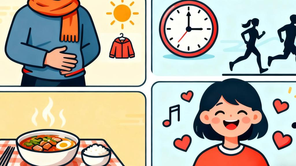 腹部保暖、三餐定時、規(guī)律作息、情緒管理是護胃“四大法寶”。AI繪圖??秋冬季如何打好“胃腸保護戰(zhàn)”?專家認為,首先是做好腹部保暖,及時增添衣物,尤其要避免腹部暴露在冷空氣中,不要長時間處于寒冷環(huán)境。其次,飲食要以溫熱易消化為主,盡量不吃生冷食物,三餐定時定量,減少腸道負擔。第三,規(guī)律作息,避免熬夜,結(jié)合適當體育鍛煉促進血液循環(huán),增強胃腸蠕動,提高身體的耐寒能力和免疫力,以此增強胃腸抵抗力。最后,焦慮和抑郁是胃腸疾病的“催化劑”,要學會釋放壓力,保持心情愉悅,不讓壞情緒“傷”胃。