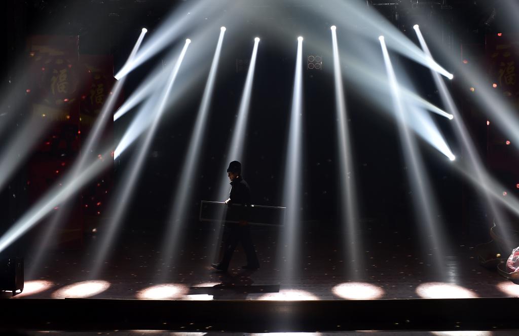 ↑1月3日,在山西省渾源縣貧困山區(qū)合唱團,一名工作人員在搬運設備為文藝下鄉(xiāng)匯演做準備。