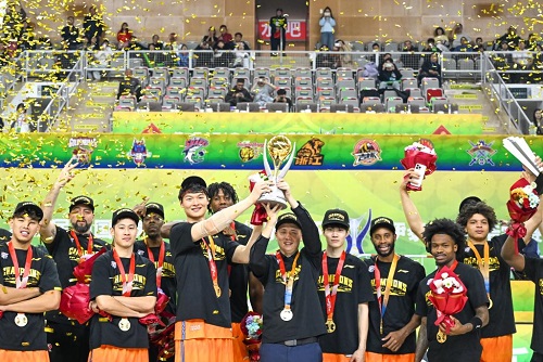 2月12日,冠軍上海久事隊(duì)在頒獎(jiǎng)儀式上慶祝。新華社記者 貝赫 攝
