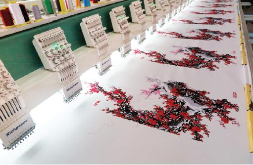 走進天津?qū)氂娔X機械有限公司的大門,迎面正對的是辦公綜合樓,樓頂中央聳立著“富怡(Richpeace)”注冊商標(biāo),樓頂從左至右用紅字排列著公司的主要產(chǎn)品種類:“電腦繡花機”“電腦絎縫機”“電腦絎繡機”“激光切割雕刻設(shè)備”“服裝CAD軟件”“繪圖儀”“切割機”“鋪布機”“電腦裁床”“全自動縫紉機”。