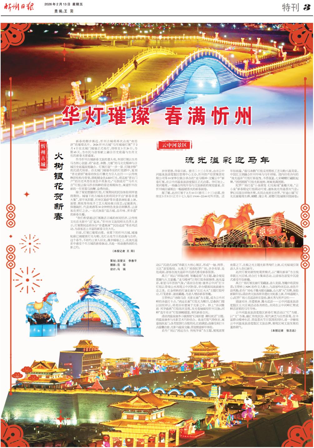 目前,燈展已璀璨啟幕。夜幕下的忻州古城,城墻輪廓已被暖黃燈光勾勒,花燈點(diǎn)亮節(jié)日的浪漫與吉祥。這個(gè)春節(jié),不妨約上家人好友,漫步城墻之上,在流光溢彩中感受千年古城的新春脈動(dòng),共赴一場(chǎng)浪漫熱鬧的光影之約。(本報(bào)記者王陽(yáng))