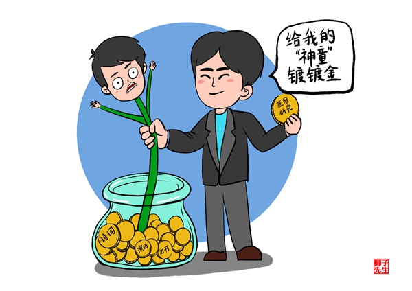 如此“鍍金”是害了孩子。學習是一場馬拉松,投機取巧和急功近利違背兒童成長規(guī)律,名不副實的光環(huán)終究會給孩子帶來負擔,甚至誤導孩子一生。父母之愛子,則為之計深遠。想讓這份愛有個正確的打開方式,就請多傾聽孩子的心聲,更加關注他們的身體素質、道德情操、交往能力、自理能力,多一份平常心和實事求是,讓孩子能夠自由健康成長?。ㄎ淖郑憾?手繪:趙凱)