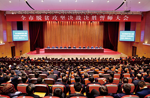 圖為全市脫貧攻堅決戰(zhàn)決勝誓師大會會場。本報記者 劉紀森 攝