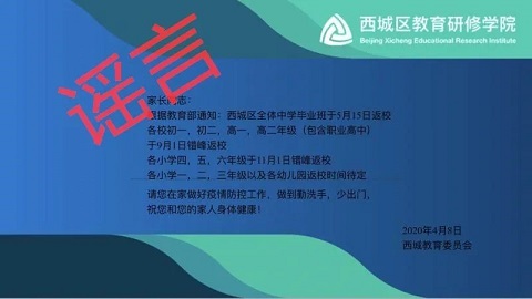 近日,“北京高三4月27日開學(xué),六年級(jí)和初三5月11日開學(xué)” 、“西城區(qū)全體中學(xué)畢業(yè)班5月15日返?!?、“北京某區(qū)教委接到通知,確認(rèn)9月1日前不會(huì)復(fù)學(xué)”等一系列消息在網(wǎng)上流傳。