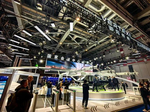 低空經(jīng)濟展區(qū)內(nèi),御風(fēng)未來、沃蘭特航空、時的科技等企業(yè)紛紛攜核心eVTOL產(chǎn)品亮相,這些電動垂直起降飛行器兼具直升機的垂直起降優(yōu)勢和固定翼飛機的高速巡航能力,部分機型已完成載人試飛,具備短途通勤、應(yīng)急救援、低空觀光等多元應(yīng)用場景。