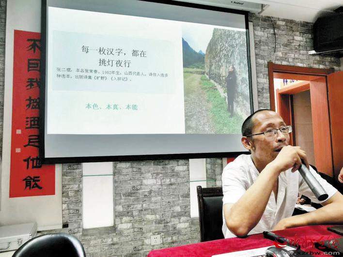 張二棍的詩歌極具特色,具有一種樸素的高貴和悲憫的神性,善于將那些被人熟視無睹的,平常、平淡、平凡的物事歌詠成詩,而且給人“縱身一躍”或者“峰回路轉(zhuǎn)”的感覺,可以說有“點石成金”的創(chuàng)作力,是近年來我國詩歌創(chuàng)作的標桿性人物。這次特別邀請張二棍進行詩歌講座,可以說是忻州詩歌界的一件大事。