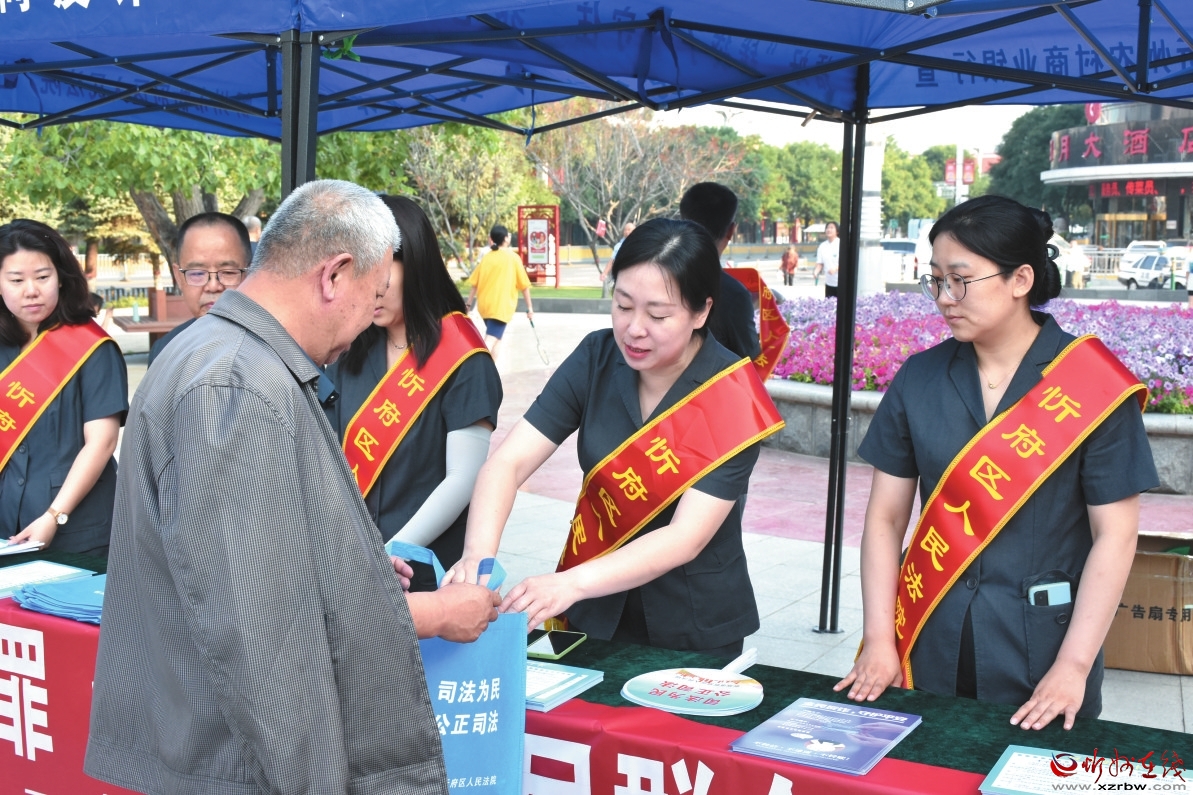 劉佳(右二)正在向過往群眾發(fā)放宣傳手冊