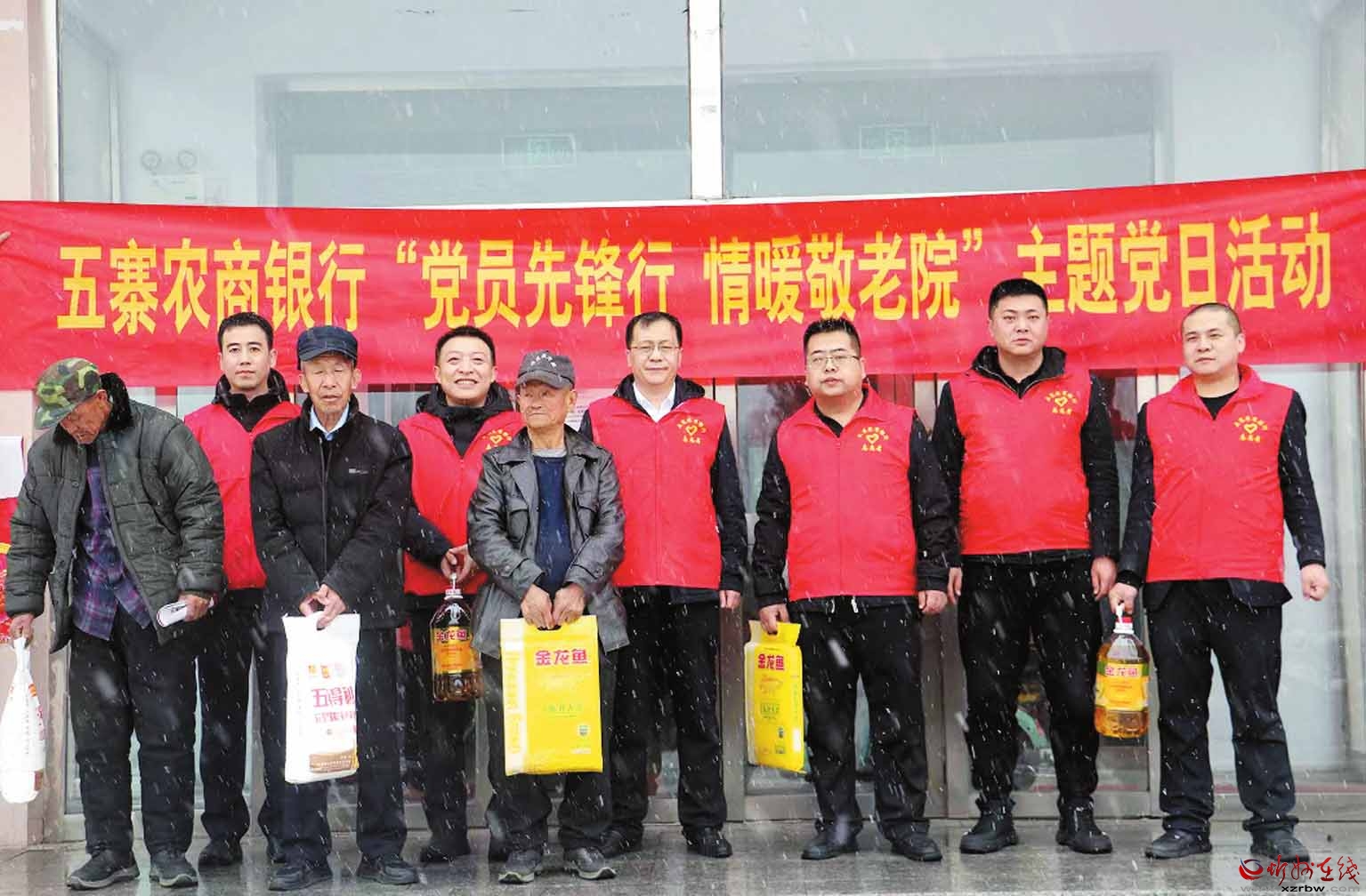 近日,五寨農(nóng)商銀行組織部分機(jī)關(guān)黨員干部和志愿者前往五寨縣北苑敬老院,開(kāi)展“黨員先鋒行 情暖敬老院”主題黨日活動(dòng)暨“弘揚(yáng)雷鋒精神 敬老院里顯真情”志愿服務(wù)活動(dòng),用實(shí)際行動(dòng)踐行雷鋒精神,為老人們送去溫暖和關(guān)懷。(張家源攝)