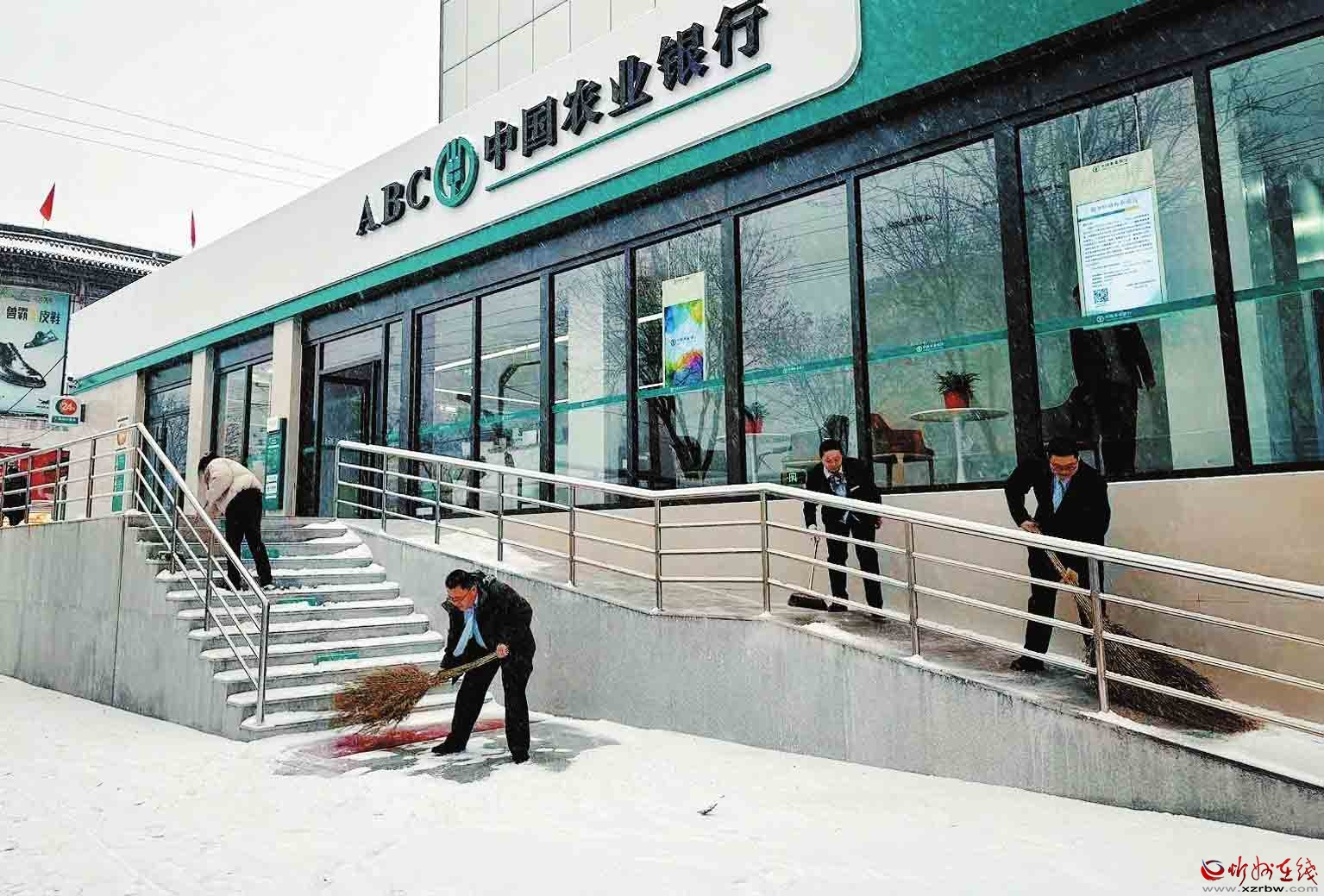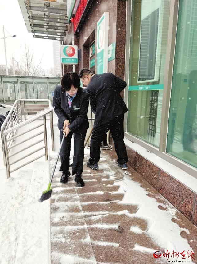 面對我市首場強降雪,農(nóng)行忻州分行員工以雪為令,及時清掃網(wǎng)點及周邊區(qū)域,確保服務通道暢通無阻,以實際行動傳遞了溫暖的金融服務。(殷俊攝)