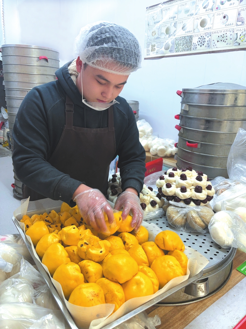 年輕的“蒸二代”,為老鋪子帶來了新氣象。他將流行歌曲改編成“揉面進行曲”,用抖音記錄做饃日常,不少年輕人循聲尋味而來。他還順應(yīng)時節(jié)推陳出新,春節(jié)的花糕、壽宴的桃饃,以及爆汁紅糖卷、南瓜豆包、紅棗開花饅頭等新中式面點陸續(xù)上線,花樣多達五十余種。盡管品類不斷翻新,但饅頭的靈魂始終是那塊傳承多年的老肥面種。“這是根,丟了,味兒就變了。”邸尚偉說。