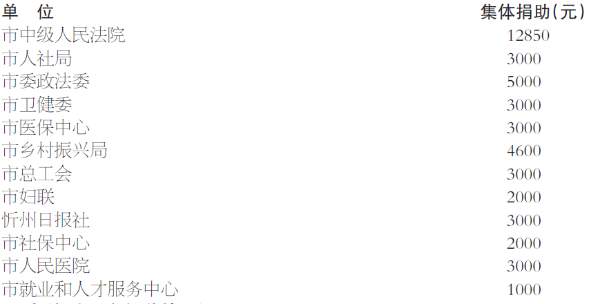 一、集體和個人同時捐助的單位(5個):