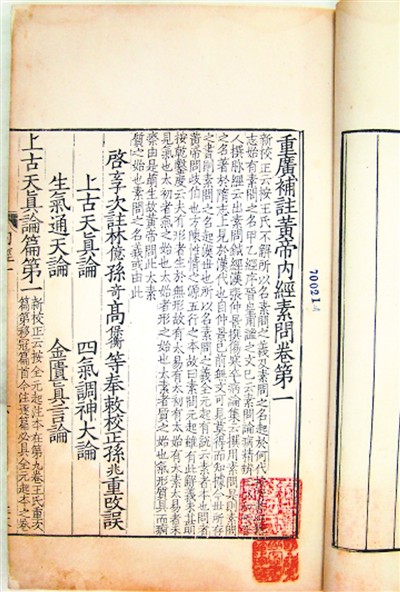 明嘉靖二十九年重廣補(bǔ)注黃帝內(nèi)經(jīng)素問二十四卷,甘肅省圖書館藏?!饵S帝內(nèi)經(jīng)》提出對瘟疫要早發(fā)現(xiàn)早治療,治療后防止復(fù)發(fā)。