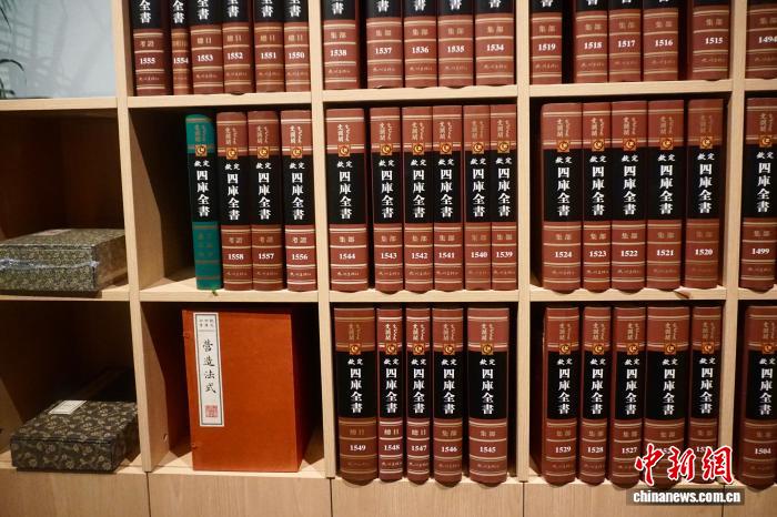 展覽展出的文瀾閣《四庫(kù)全書》精裝影印本。李嘉茵 攝
