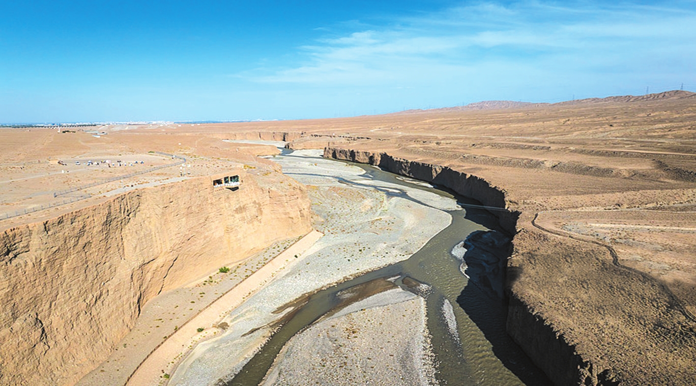 墩體與討賴河峽谷全貌,可見加固后的遺存結(jié)構(gòu)