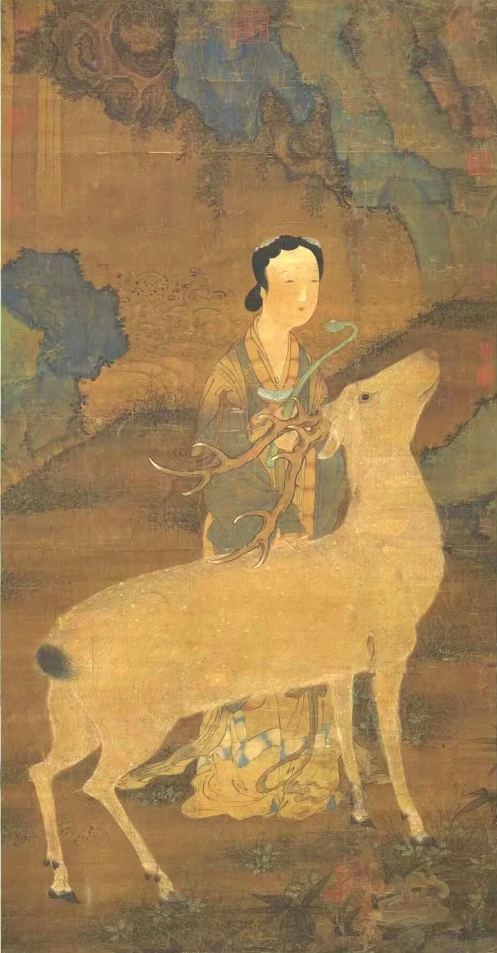 在傳統文化中,鹿是一種有神力的動物,神話傳說中鹿往往是神仙的坐騎。李白一生尋仙問道,其《夢游天姥吟留別》中有“且放白鹿青崖間,須行即騎訪名山”之名句。南極仙翁的白鹿,不僅被繪制在壽畫里,在文學中也大放異彩?!段饔斡洝分械陌茁咕褪菈坌悄蠘O仙翁的坐騎,偷得壽星的蟠龍拐杖后下凡為妖。在《白蛇傳》里,白娘子獨闖昆侖山,欲盜取起死回生的靈芝仙草,遭遇鶴、鹿二仙童阻攔。清代神魔小說《女仙外史》中的鹿童化為道人,下凡后為禍人間。屢破票房紀錄的動畫電影《哪吒2》,其中的反派之一鹿童,是無量仙翁的大弟子,擔任捕妖隊頭領,戲份頗重。