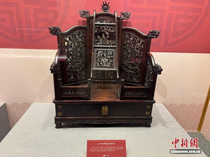 2月12日,“丹宸國(guó)色——沈陽(yáng)故宮博物院建院百年新春特展”在沈陽(yáng)故宮開(kāi)展。圖為展覽中展出的清硬木雕花喜字梳妝臺(tái)。中新社記者 韓宏 攝