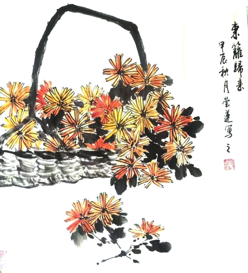 傳統(tǒng)花鳥素有“托物言志”之脈,從明代大寫意花鳥畫代表徐渭以“墨葡萄”寄寓郁憤,到近現(xiàn)代花鳥畫大家齊白石以“蝦蟹”抒發(fā)閑情,題材歷來是畫家心緒的直觀映照。胡瑩蓮以吉祥意象入畫,實則是將傳統(tǒng)花鳥美學與當代人的情感需求深度聯(lián)結(jié),讓“氣韻”從紙墨氤氳間走出,自然融入當代生活現(xiàn)場。