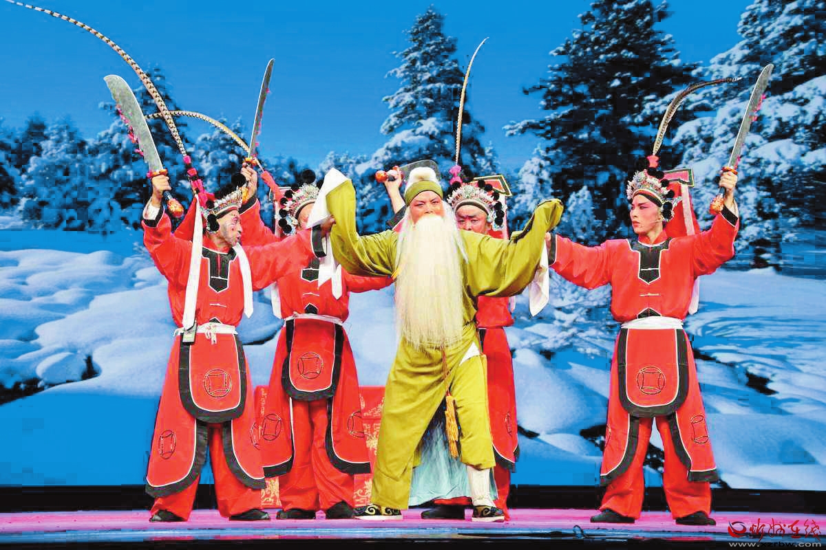 1943年,大眾劇社遷往康家灘,從工衛(wèi)旅劇社調(diào)來王洽勛等二人,負責教唱晉劇,排練了《撿柴》《蘆花》《回荊州》等傳統(tǒng)劇目。同年,晉綏二中師生共同組建了一個業(yè)余劇團,演出的節(jié)目反映了根據(jù)地人民革命斗爭的現(xiàn)實生活,教育意義非常深刻。如現(xiàn)代歌劇《十二把鐮刀》,話劇《棋局未定》《把眼光放遠點》,北路梆子《十二金牌》等?!妒鹋啤肥歉毙iL武進卿編寫的劇本,由校長范若愚飾演岳飛。