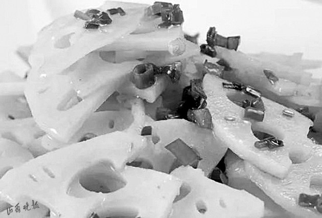 民俗流傳中,人們借助于蓮藕的特征和諧音賦予了它更多的吉祥內(nèi)容。古太原地區(qū)的傳統(tǒng)筵席“八碟八碗”中,有一款坐底大菜——涼拌蓮菜(本地人叫藕根大片)。之所以如此安排,完全就是沿用了諧音吉祥的民俗習(xí)慣。“藕”與“偶”諧音,藕根大片占個“偶”,有佳偶天生的美好寓意,故而成了八大碗中必不可少的一道菜品?!吧彶恕庇种C音“連財”,意思是菜上完了,還有扯不斷、沒完沒了的財運,八碗帶財一起來。寓意如此美好,自然人人都滿意。