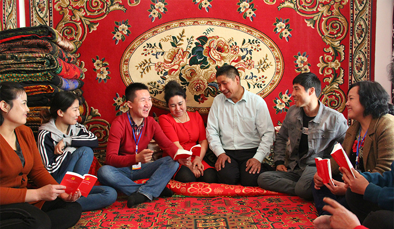 △達(dá)西村村民在聆聽駐村工作隊(duì)隊(duì)員宣講黨的好政策。
