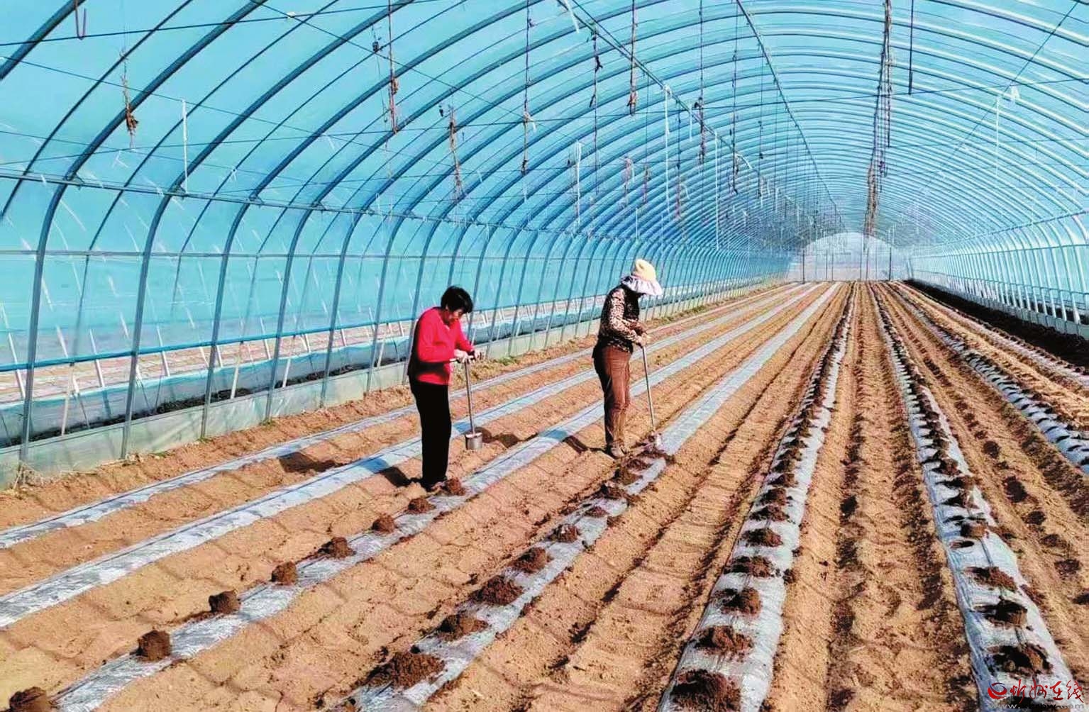 陽春三月,春風(fēng)拂過雙乳山,西大王村的豆角產(chǎn)業(yè)園迎來豆角種植好時(shí)機(jī)。大棚里,六七個(gè)工人有序作業(yè),有的在點(diǎn)坑穴,有的在撒種、填土。一個(gè)大棚種好后,打開閥門,水流順著地上的滴管涌到坑穴,為剛?cè)鱿碌姆N子提供水分。據(jù)了解,西大王村采用“黨支部+集體經(jīng)濟(jì)合作社+農(nóng)戶”的發(fā)展模式,既為集體增收,又讓村民受益。今年,豆角種植園區(qū)一共有13個(gè)大棚,占地約40畝。為了搶抓農(nóng)時(shí),提前上市,賣個(gè)好價(jià)格,此次播種雇了許多村民幫忙,播種大約需要半個(gè)月時(shí)間才能完成。