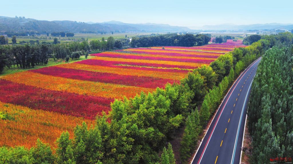 金秋時(shí)節(jié),靜樂藜麥陸續(xù)進(jìn)入成熟期。不同品種的藜麥成熟后,麥穗呈現(xiàn)出火紅、金黃、紫紅等多種色彩,藜麥田宛如一幅色彩斑斕的油畫。在陽光的照射下,隨風(fēng)搖擺的藜麥穗和村民們忙碌的身影組成了秋日的豐收美景圖。