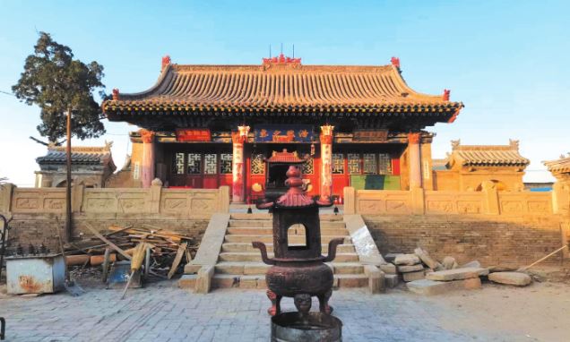 東關(guān)關(guān)帝廟位于原平市崞陽鎮(zhèn)東關(guān)村,距崞陽城東門外約100米。始建年代不詳,據(jù)正殿梁架題記載,清咸豐三年(1953)重修,現(xiàn)存建筑為清代遺構(gòu)。東西長25.5米,南北寬87米,占地面積2218平方米。坐北朝南,二進院落布局,中軸線建有影壁、大門、正殿和圣母殿,兩側(cè)為東西配殿。正殿磚砌臺基,前設月臺,其上三面設勾欄、望柱,欄上雕有各種花卉、如意及禽獸。殿身面寬三間,進深六椽,單檐懸山頂。七檁前后廊式構(gòu)架,斗拱五踩重翹,平身科每間一攢,出45度斜拱,前檐各間均設四扇六抹萬字紋格扇門,殿內(nèi)新塑像3尊。圣母殿磚砌臺基,殿身面寬三間,進深三椽,單檐硬山頂,四檁前廊式構(gòu)架。明間四扇六抹萬字紋格扇門,次間為格扇窗。殿內(nèi)新塑像3尊。廟內(nèi)存清代重修關(guān)帝廟碑3通,殘碑1通,石獅2對。1981年列為原平市(縣級)文物保護單位。2022年列為第三批市級文物保護單位。